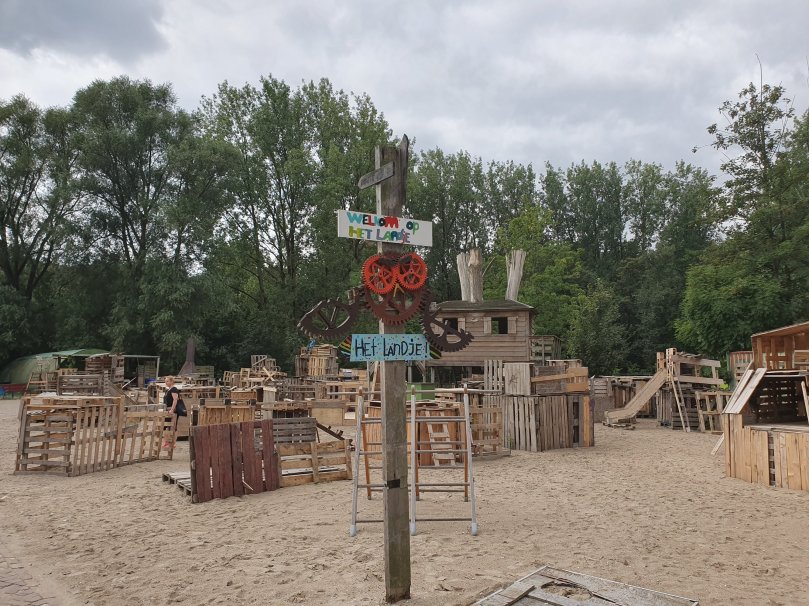 Vanaf het eerste moment genoot ik. Al fietsend kwamen we bij een soort eiland vol speel en houtwerk mogelijkheden voor de jeugd. Daar moest ik even stoppen. Er volgende een mooie ontmoeting met beheerder Henk en 80 jarige vrijwilligster Anna die ons in ruil voor een Stad van Morgen knuffel overal rond heeft geleid. Hoe de ponys en stallen zijn gered na de storm door de hulp van allerlei mensen, hoe verschrikkelijk het is dat kinderen van ouders niet vuil mogen worden, hoe ze nu samenwerken met een kinderdagverblijf, hoe ze zelf hulp kreeg van haar lieve buren, enz….allemaal met een lekker Amsterdamse tongval…