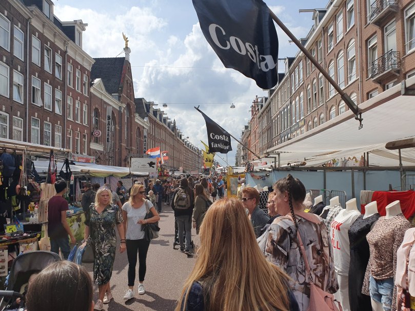 Fietsen in Amsterdam is een heerlijke ervaring. De verkeerschaos is lekker dynamisch met voetgangers, trams, fietsers, busjes, alles door elkaar. De rit naar het Surinameplein was aangenaam en ik stopte enkele keer om te genieten van de grachten of fraaie gebouwen.
