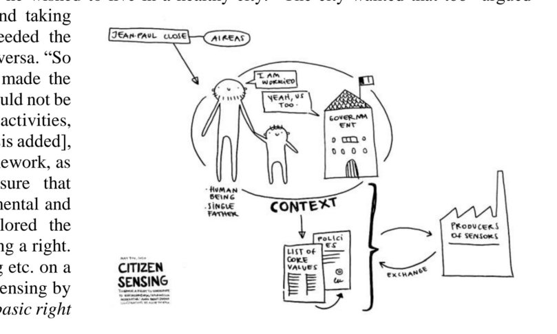 - Burgers/inwoners meten altijd puur door ons menselijk bewust zijn. We voelen, ruiken, zien, horen, enz en interpreteren deze prikkels dagelijks. Als we echter voor onszelf “het onzichtbare zichtbaar” willen maken door onze eigen biologische sensoren aan te vullen met technologische varianten dan komen we op het gebied van juridische bruikbaarheid van wat we zien. De landelijke overheid heeft zich het alleenrecht toegeëigend voor de interpretatie van datgene wat ze zelf meet. Dat wat de inwoners meten heeft geen juridische waarde. Binnen de context van AiREAS is dat ook niet nodig. Participatie is niet gericht op het aanvallen van onze overheid of het oude systeem maar op cocreatie van gezondheid waar de overheid mede verantwoordelijkheid voor neemt. Het is niet “angst” gestuurd maar juist “kans”. Persoonlijke metingen zijn belangrijk om te kijken naar de eigen verantwoordelijkheid binnen een probleem, vraagstuk of uitdaging. Iemand die eigen verantwoordelijkheid neemt kan dat ook aan de andere partners vragen. De overheid is zo’n partner die hierop gewezen wordt. Daar is geen juridisch systeem voor nodig, wel open en kundig overleg.