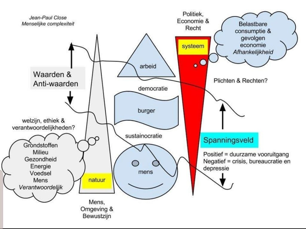 Internationale juristen verenigen zich om aansprakelijkheden te eisen, schadevergoedingen te claimen en de schuldigen te straffen. Ondertussen dienen we een les te leren over afhankelijkheid. Er dient weer balans te komen tussen wat we zelf presteren (samen) en wat we aan anderen overlaten (afhankelijkheid). De verhouding 90 (presteren)/ 10 (afhankelijkheid) is veel duurzamer dan 10 (presteren)/ 90 (afhankelijk). Sustainocratie blijft de hand uitreiken aan mens en instellingen om de transitie van verhoudingen samen op regio niveau aan te gaan.