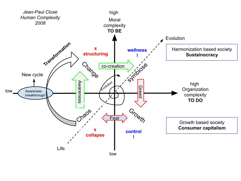 Sustainocratie geeft vorm aan een brede, verdiepende maatschappelijke context waarin de integraal biologische, levende mens centraal staat als interactief onderdeel met haar natuurlijke omgeving. Sustainocratie positioneert zich in de menselijke complexiteit in het gebied van welzijn gedreven harmonie en symbiose. Een gebied dat geen status quo betekent (controle) maar constante, zelfbewuste aanpassing aan een veranderende werkelijkheid. Hierin zijn menselijke kernwaarden sturend, waaronder de brede vorm van gezondheid, zowel op persoonlijk niveau als collectief als mensheid en maatschappij.