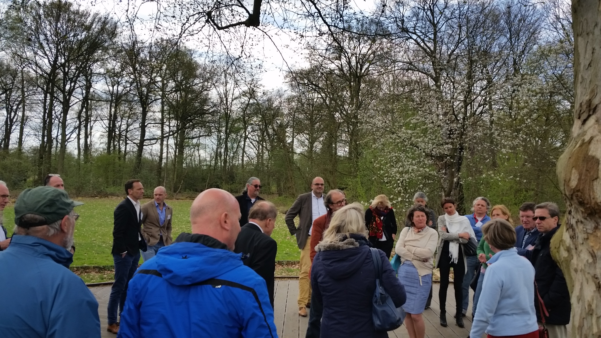 Een grote vogel in een andere boom bracht ons tot de beeldspraak van Paul de Blot, die helaas niet aanwezig kon zijn door een longontsteking, door ons openlijk de vraag te stellen “waarom blijven die moleculen van de vogel een eenheid in weer en wind?”. Het antwoord vinden we in de bindende spiritualiteit de vogel tot leven heeft gebracht en het doel heeft ingeblazen zich te blijven voeden en reproduceren. Zolang de vogel dit doel kan blijven nastreven zal het leven de moleculen tot een hechte band samenhouden. Zo functioneert de bezieling van een mens en menselijke organisatie ook. Het DNA maakt de samenstelling uniek maar de doelgerichte levendigheid, de spiritualiteit en de missie (purpose) maakt de samenstelling tot een eenheid. De vogel gebruikt de boom en de boom heeft de vogel nodig. De unieke levende eenheden vormen een complexe band, een ecosysteem.
