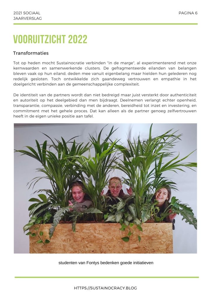 Sinds de introductie van onder andere Sustainocratie en de proactieve regionale focus op gezondheid, gecombineerd met de vele huidige stresspunten in een onhoudbare maatschappijvorm, zien we een cultuurverandering ontstaan. Steeds meer mensen worden bewust van hun eigen verantwoordelijkheid, niet alleen voor zichzelf maar ook de directe omgeving. Ook het beleid past zich aan. Het faciliteert en reguleert op basis van gezondheid, gezonde omgangsvormen en een gezonde leefomgeving maar neemt niet de verantwoordelijkheid meer over van degenen die het zouden moeten nemen. Het woord SAMEN wordt steeds actueler, ook in de dynamiek van het samen vorm geven van ons welzijn. Een professionele zorg is dan een waardevolle ondersteuning voor de uitzondering, niet meer de regel.