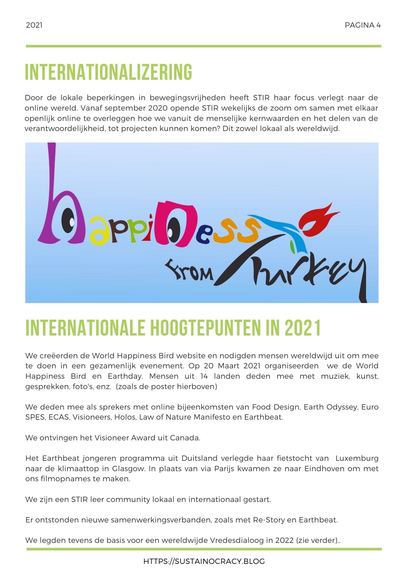 We hebben nu besloten dat we doorgaan met de World Happiness Bird als metafoor voor onze positiviteit en maatschappijvisie gebaseerd op overvloed door cocreatie en gelijke verdeling.