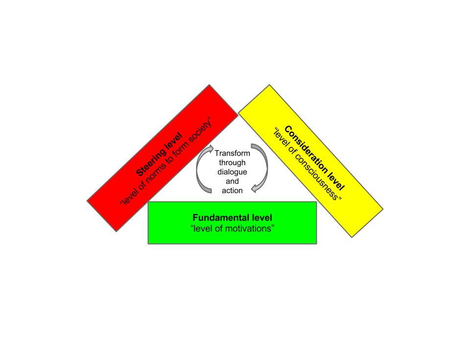 De oude maatschappijvormen uitnodigen en helpen zich te transformeren volgens het menselijke complexiteit model (van macht naar autoriteit)