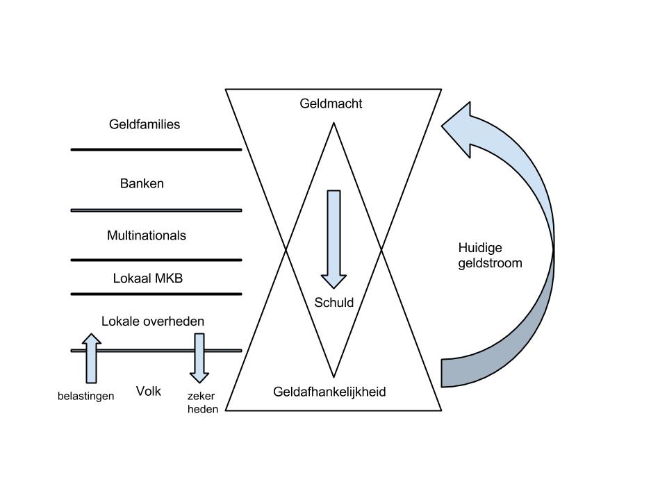 Als alle geld dat voor handen is in de wereld verdeeld zou worden over de wereldbevolking van 7 miljard mensen dan zou iedereen meervoudig miljonair zijn. Waarom is er dan zoveel ongelijkheid, armoede, oorlog, crisis en vervuiling? Dat komt door de manier waarop geld als product, doel en machtsinstrument is georganiseerd. Het is in handen van enkelingen die het geld als schuldsysteem hanteren om macht uit te oefenen uit eigenbelang. De evolutie van de mens, en zelfs het leven op Aarde, is in handen gekomen van deze immorele speculanten en hun eisen.