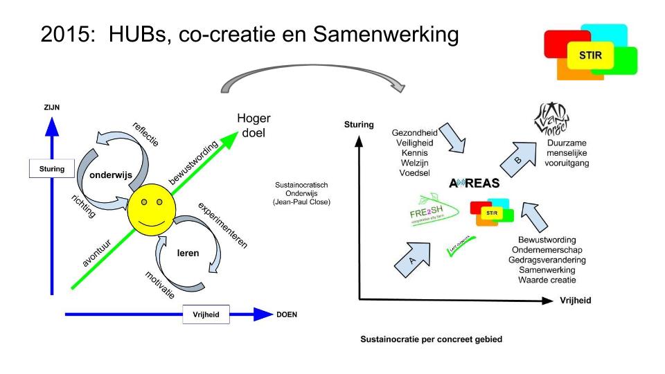 Nicolette Meeder: Is in 2009 ingegaan op de uitnodiging en experimenteert met concepten zoals FRE2SH en de STIR Academy om zo een inspiratie netwerk op te bouwen van zowel duurzame menselijkheid, Sustainocratie en de transitie die gaande is.