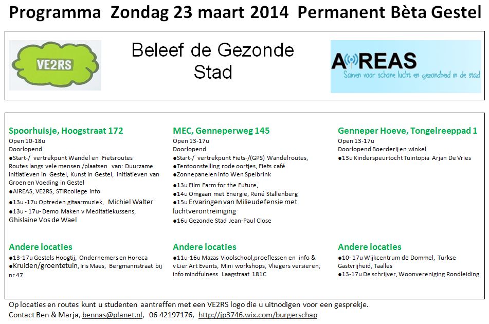Hier treft u de programmas van 22 en 23 maart als ook wijkplattegronden waarop u ruim 250 initiatieven in Gestel vindt die u kunt bezoeken. Voor de interactieve kaart kunt u terecht op www.stadvanmorgen.com of http://jp3746.wix.com/burgerschap.