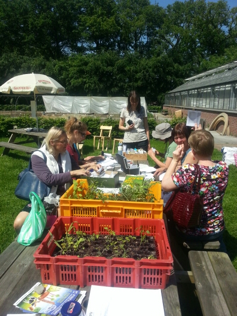 En natuurlijk veel praten met elkaar, gedachten en ervaringen uitwisselen, kennis maken met nieuwe gezichten en inzichten, geldloos handelen, genieten van het weer….