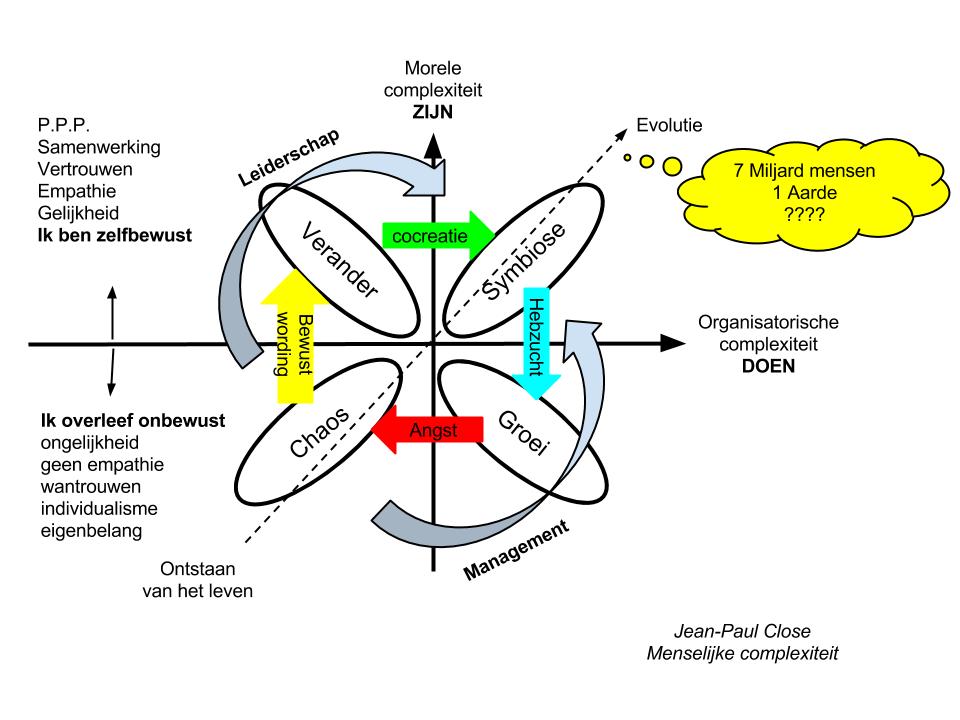 De motor van bewustwording is chaos van waaruit een soort stuwkracht komt van innovatie (leiderschap) en verandering naar nieuwe maatschappelijke harmonie, maar ook een remkracht door de angst voor de chaos en wat het doet omvallen uit de oude harmonie. STIR Academy concentreert zich vooral op het zichtbaar maken van de kracht van leiderschap en de welzijnsbelofte die een harmonieuze maatschappij (symbiose) oplevert als we als mens samen er aan werken.
