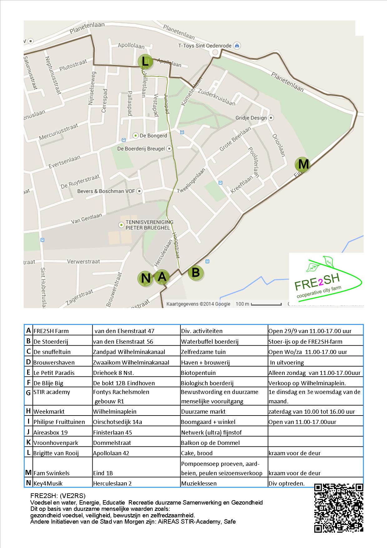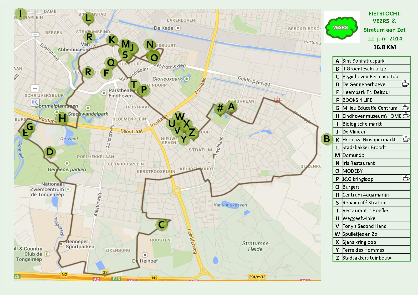 Vanaf het Sint Bonifaciuspark kunt u die middag de VE2RS fietsroute doen die u langs allerlei initiatieven leidt. Betrokken deelnemers zijn te herkennen aan het VE2RS logo. De fietstocht gaat langs Stadslandbouw, Kringloopwinkels, Repair Café, biologische winkels, enz. Sommigen zijn deze zondag speciaal open. Op de site treft actuele informatie en achtergronden.