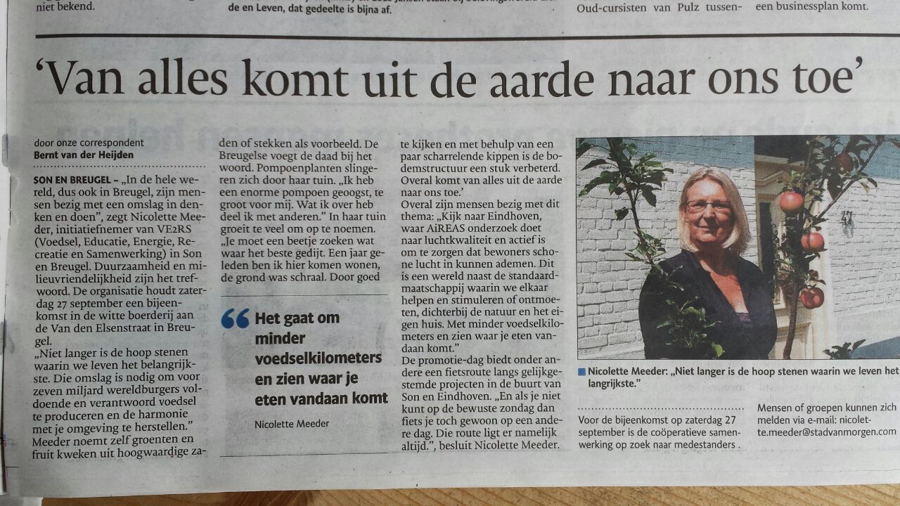Regionale fruitboom specialist Carlos Faes en Eindhovense stadspoort Philips Fruittuin haakt aan met een instructiefilmpje en Eindhovens Dagblad besluit twee volle pagina’s te besteden aan stadslandbouw en de plannen van VE2RS.