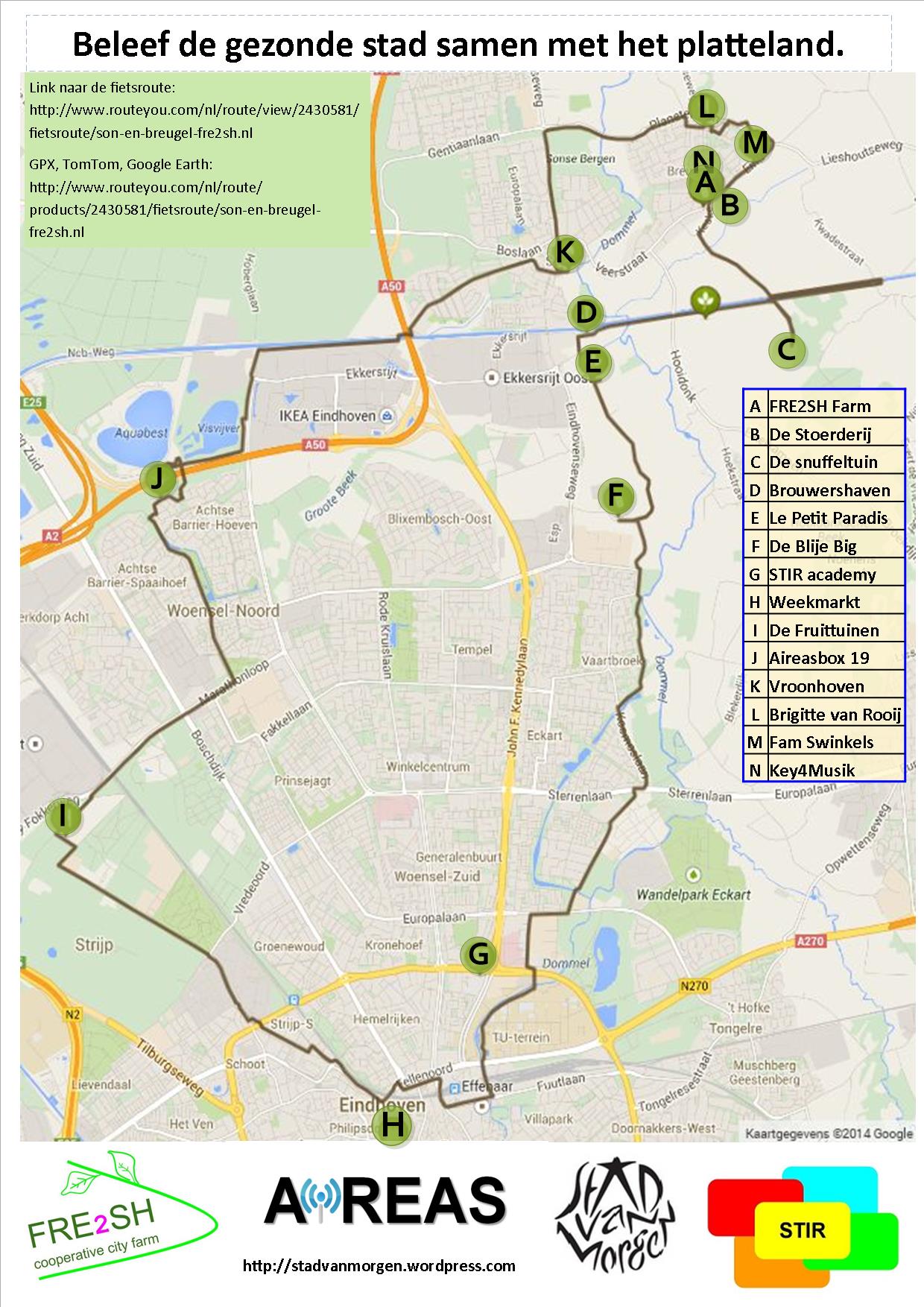Proeftuin040 en TransitionTown Eindhoven hadden een fietsroute van 40km uitgezet dat zo’n 20 verschillende stadslandbouwprojecten verbond. Een prachtige brochure bracht alles mooi en blijvend in beeld.